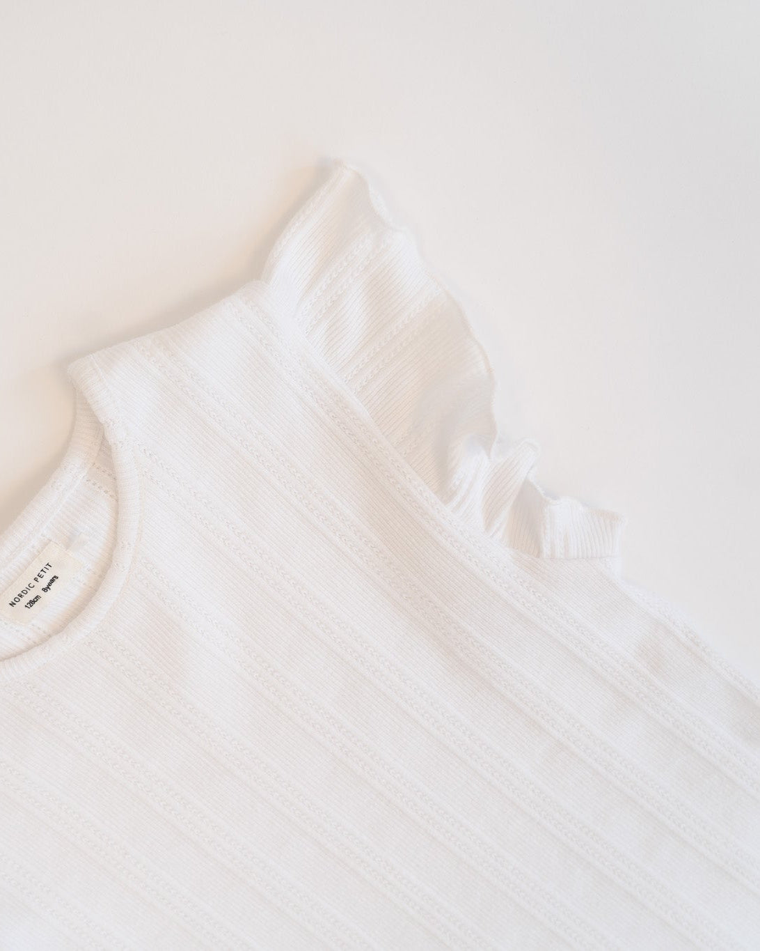 Camiseta estampada en algodón suave con volantes en los hombros. El logotipo está situado en la parte inferior izquierda. Combínala fácilmente con otras prendas para un look divertido y con estilo.